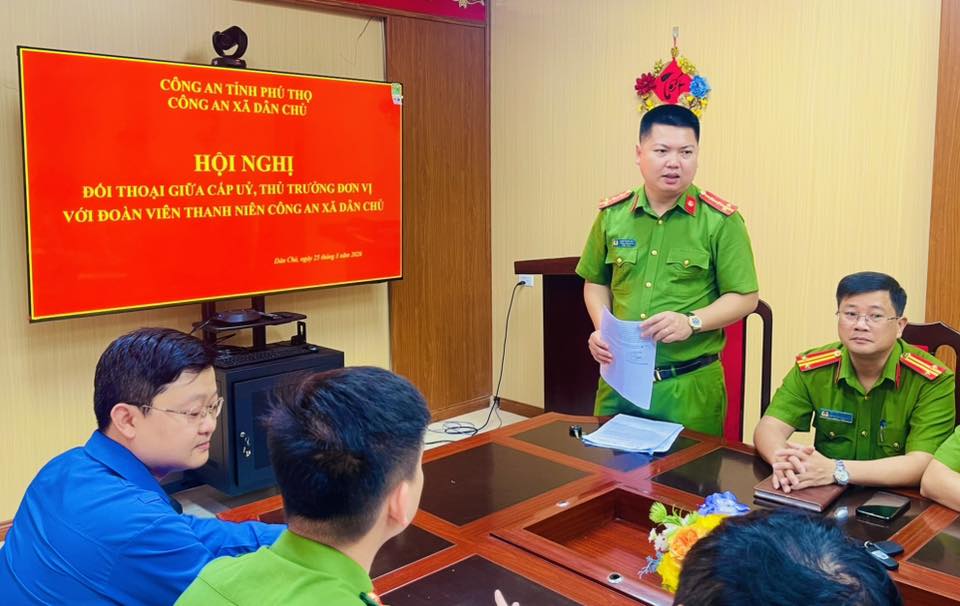 Sáng ngày 26/3/2026, Công an xã tổ chức Hội nghị đối thoại giữa Chi bộ, Chỉ huy Công an xã với Đoàn viên thanh niên Công an xã Dân Chủ. Đại uý Đàm Thanh Hải - Uỷ viên BTV Đảng ủy, Bí thư Chi bộ, Trưởng Công an xã chủ trì hội nghị. Tham dự Hội nghị còn có các đồng chí trong Ban Chi uỷ, chỉ huy Công an xã; đại diện Ban Chấp hành Đoàn thanh niên xã Dân Chủ.