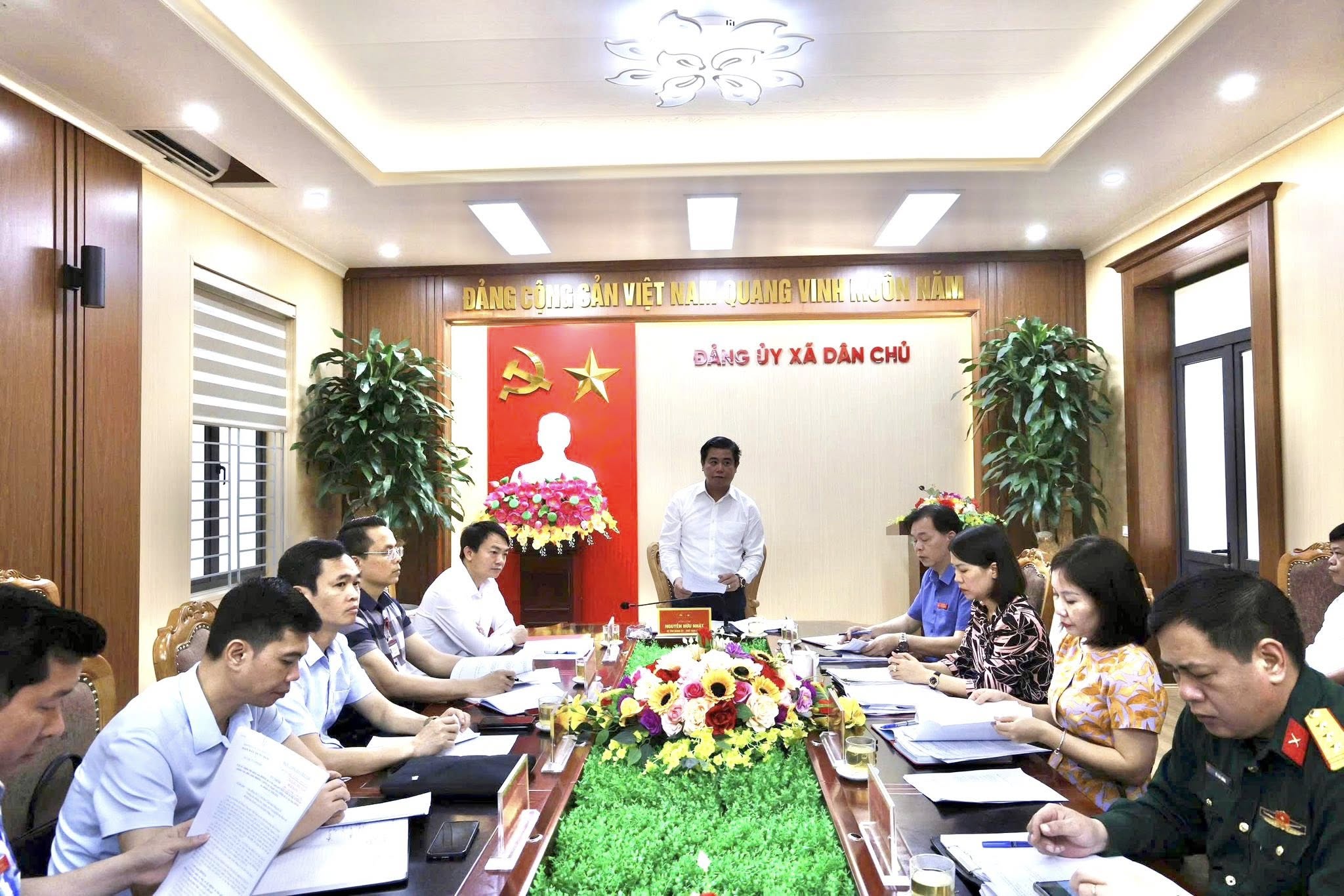 Sáng ngày 20/3/2026, Đảng bộ xã Dân Chủ tổ chức Hội nghị Ban chấp hành mở rộng thông qua một số nội dung quan trọng. Đồng chí Nguyễn Hữu Nhật - Bí thư Đảng uỷ, Chủ tịch HĐND xã chủ trì hội nghị. Tham dự hội nghị có đồng chí Đỗ Quốc Hà - Phó Bí thư Đảng uỷ, Chủ tịch UBND xã; đồng chí Nguyễn Đăng Khoa - Phó Bí thư Thường trực Đảng uỷ; các đồng chí UV Ban Thường vụ, Uỷ viên Ban Chấp hành Đảng bộ, Trưởng các phòng cơ quan chuyên môn, đơn vị sự nghiệp thuộc xã.