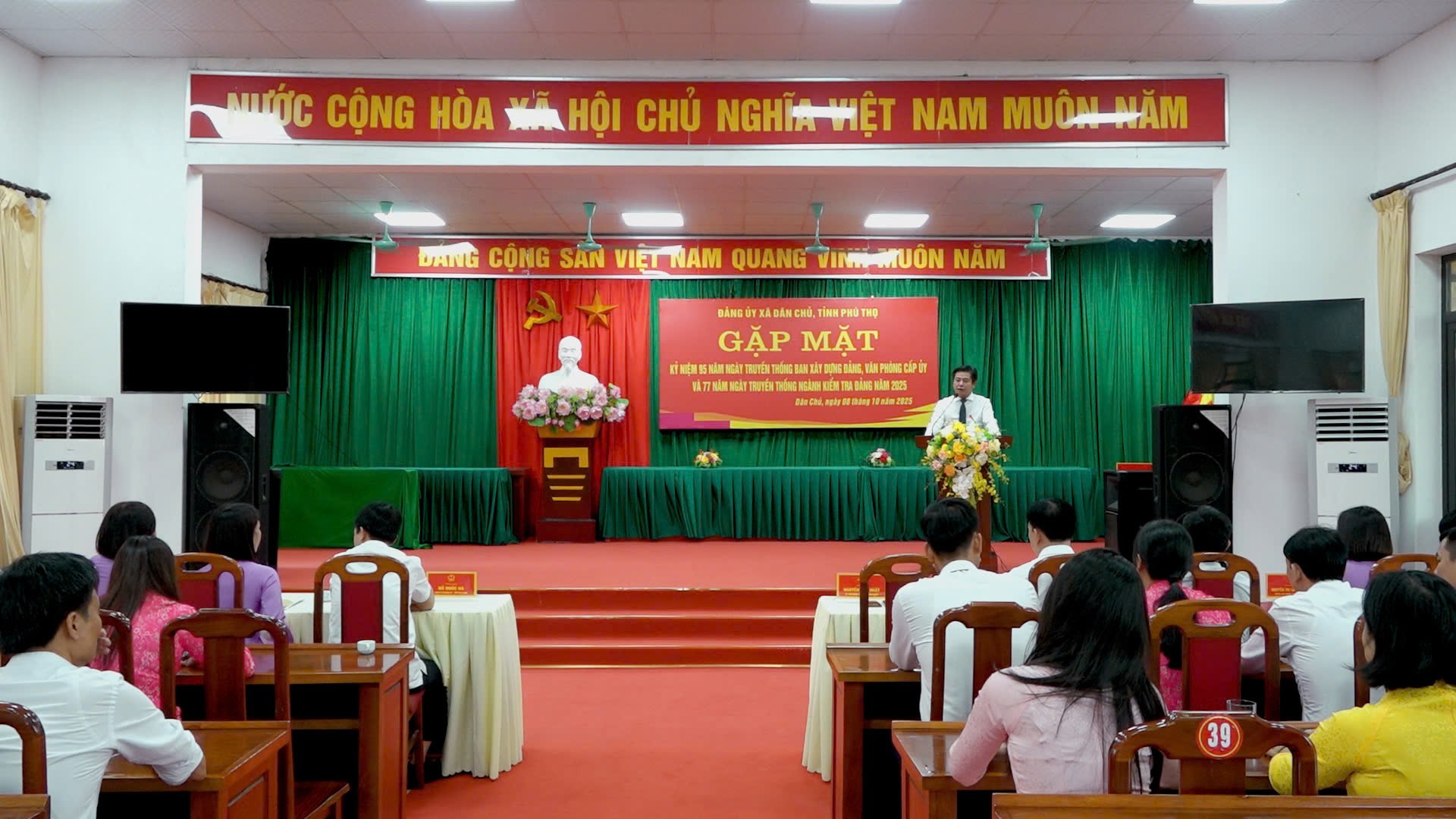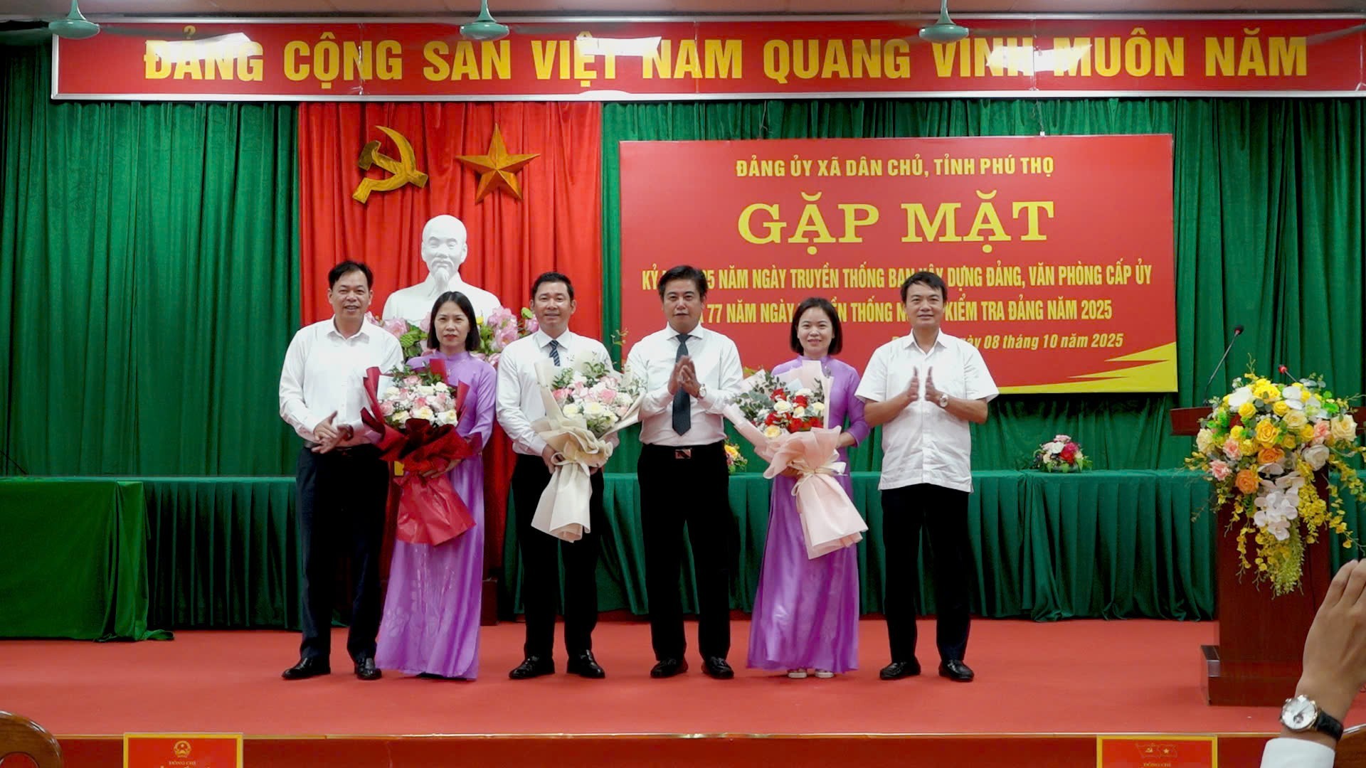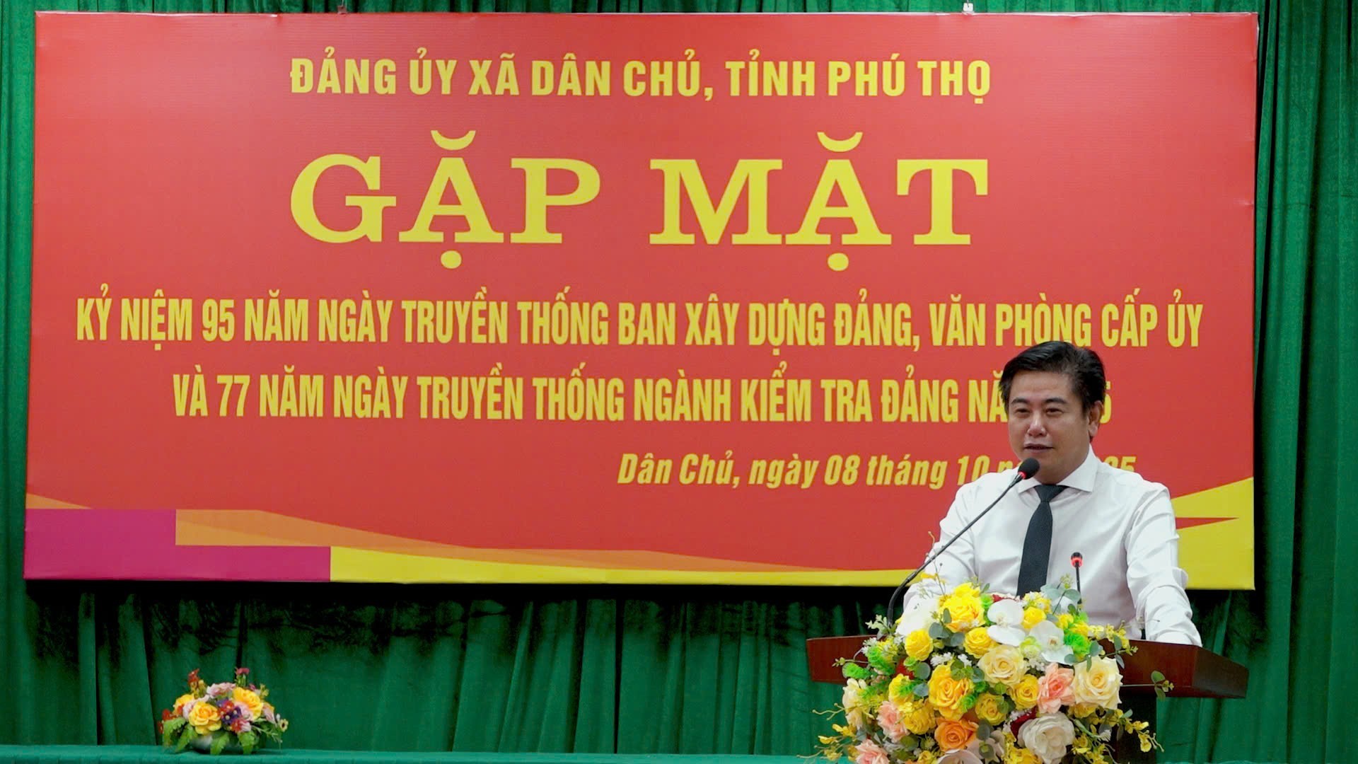 Ngày 08/10/2025, Đảng ủy xã Dân Chủ đã tổ chức buổi gặp mặt nhân kỷ niệm 95 năm Ngày truyền thống Ban xây dựng Đảng, Ngày truyền thống Văn phòng cấp ủy và 77 năm Ngày truyền thống ngành Kiểm tra Đảng. Tới dự có Đồng chí Nguyễn Hữu Nhật - Bí thư Đảng ủy, Chủ tịch HĐND xã; đồng chí Đỗ Quốc Hà - Phó bí thư Đảng ủy - Chủ tịch UBND xã; đồng chí Nguyễn Đăng Khoa - Phó bí thư TT Đảng ủy; các đồng chí trong Ban thường vụ Đảng ủy; Trưởng các phòng, ban, ngành đoàn thể; cán bộ, chuyên viên ban xây dựng Đảng, Văn phòng Đảng ủy và Ủy ban kiểm tra Đảng ủy.