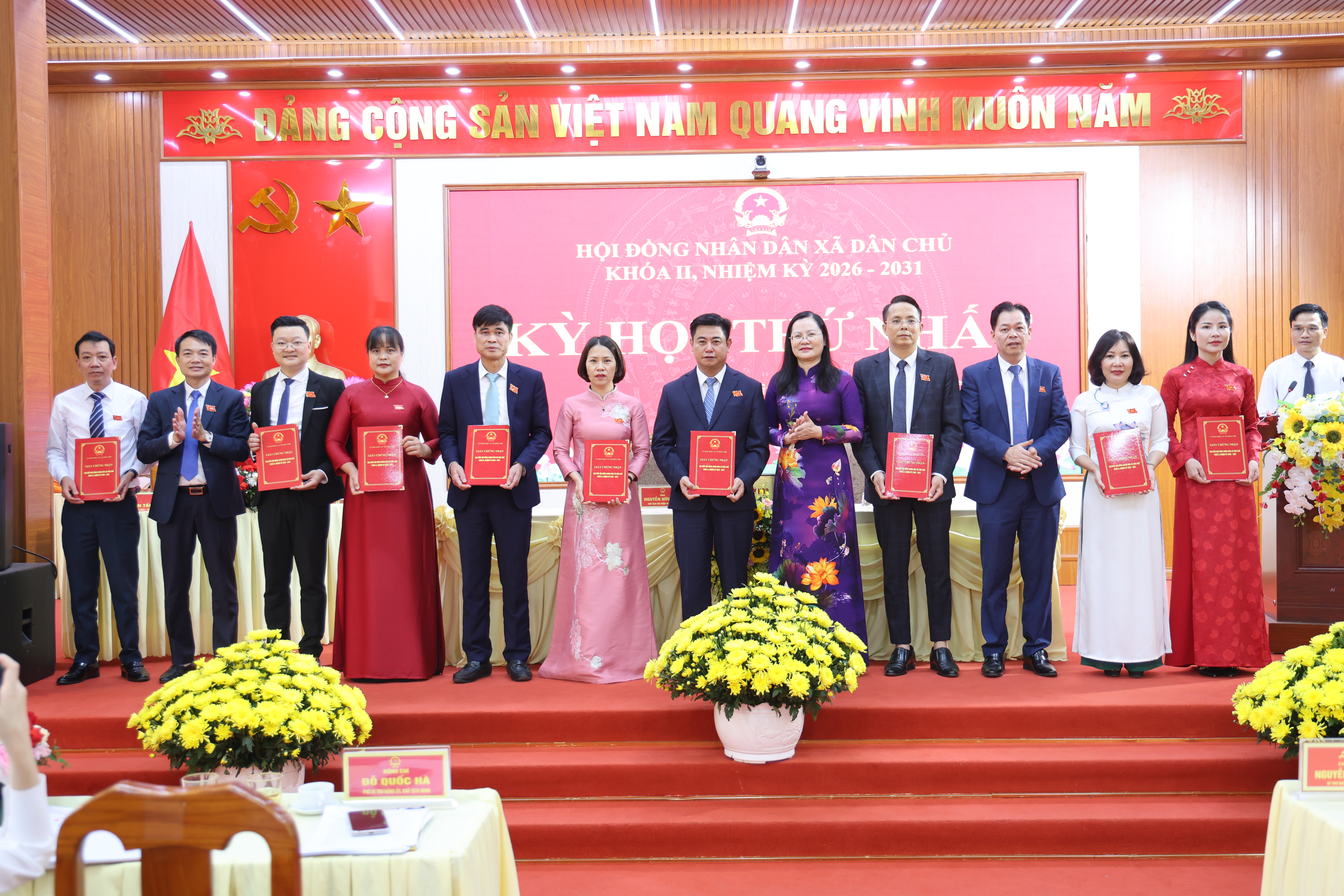 Đối với chức danh chủ chốt và Uỷ viên UBND xã: Đồng chí Đỗ Quốc Hà - Phó Bí thư Đảng ủy được bầu giữ chức Chủ tịch UBND xã; các đồng chí Phạm Quang Đăng, Lê Phúc Tuất - Ủy viên BTV Đảng ủy được bầu giữ chức Phó Chủ tịch UBND xã cùng các Ủy viên UBND xã; các đồng chí: Trưởng phòng kinh tế, trưởng phòng VH-VH, Trưởng Công an, Chỉ huy trưởng Quân sự được bầu giữ chức vụ Ủy viên UBND xã nhiệm kỳ 2026 - 2031. HĐND xã cũng thông qua Nghị quyết phê chuẩn số lượng, danh sách Phó Trưởng ban, Ủy viên các Ban; thành lập các Tổ đại biểu HĐND xã.
