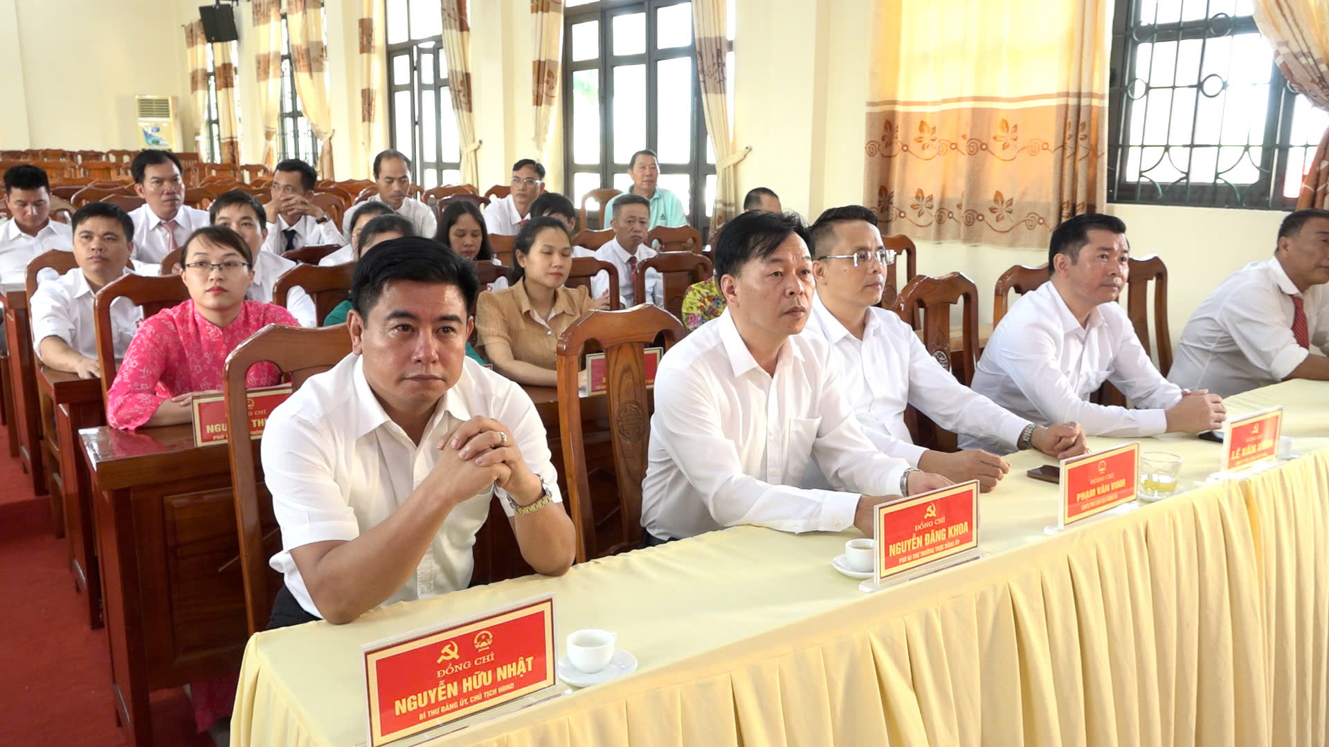 Dự buổi gặp mặt có đồng chí Nguyễn Hữu Nhật - Bí thư Đảng uỷ, Chủ tịch HĐND xã; đồng chí Đỗ Quốc Hà - Phó Bí thư Đảng ủy, chủ tịch UBND xã; đồng chí Nguyễn Đăng Khoa - Phó Bí thư Đảng uỷ, đồng chí Phạm Văn Vinh - UVBTV, Phó chủ tịch HĐND xã, đồng chí Phạm Quang Đăng - Ủy viên BTV, Phó chủ tịch UBND xã; Đồng chí Lê Phúc Tuất - Ủy viên BTV, Phó chủ tịch UBND xã; lãnh đạo và cán bộ các phòng, cơ quan, đơn vị: Văn phòng HĐND&UBND, phòng Kinh tế, phòng Văn hoá - Xã hội; Trung tâm dịch vụ sự nghiệp công; Trung tâm phục vụ hành chính công.
