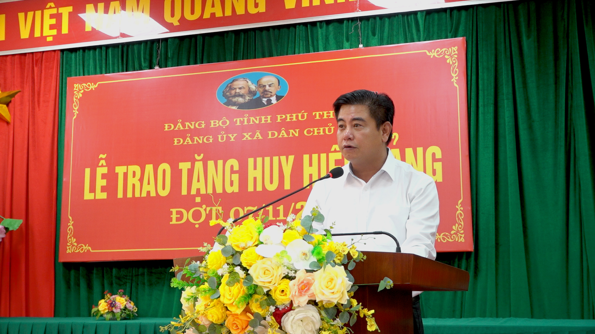 Sáng ngày 06/11, Đảng bộ xã Dân Chủ đã tổ chức Lễ trao tặng Huy hiệu Đảng cho các Đảng viên đủ điều kiện theo hướng dẫn của Ban Tổ chức Trung ương trong đợt 07/11/2025. Tới dự buổi lễ có đồng chí Đồng chí Nguyễn Hữu Nhật - Bí thư Đảng ủy, Chủ tịch HĐND xã; đồng chí Đỗ Quốc Hà - Phó Bí thư, Chủ tịch UBND xã; đồng chí Nguyễn Đăng Khoa - Phó Bí thư thường trực Đảng ủy; đại diện lãnh đạo Ban Xây dựng Đảng, Ủy ban kiểm tra Đảng ủy, Ủy ban MTTQ Việt Nam xã, Văn phòng Đảng uỷ xã; các đồng chí UV BTV, UV BCH phụ trách các chi bộ, Bí thư các chi bộ có Đảng viên được nhận Huy hiệu Đảng.