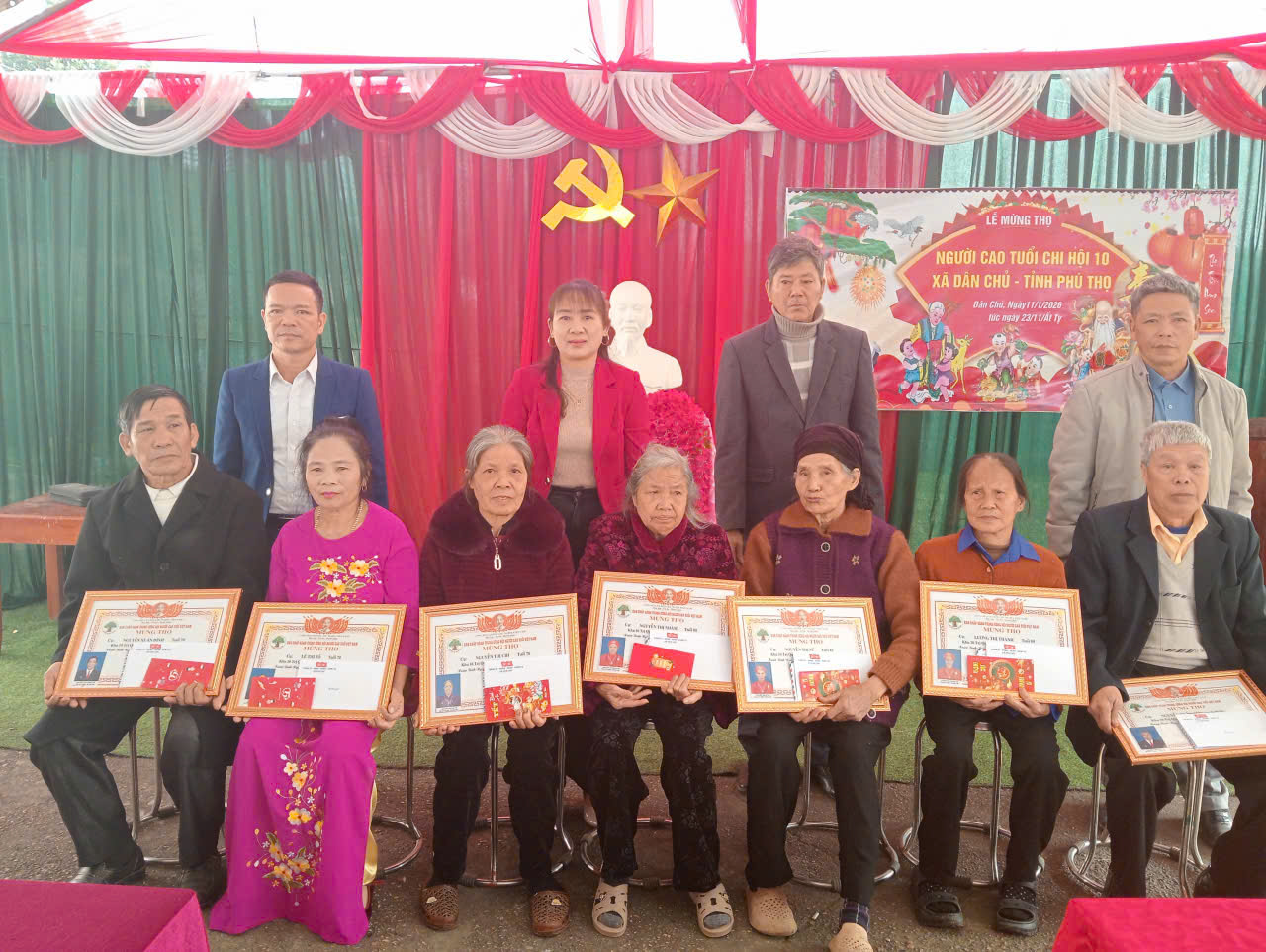 Được biết năm 2026, trên địa bàn xã Dân chủ có hơn 300 cụ được đăng thọ trong đó có 22 cụ từ 100 tuổi trở lên. Xã đã tổ chức thành các đoàn công tác đến thăm tặng quà cho các cụ từ 100 tuổi trở lên tại nhà và dự lễ mừng thọ tại các khu dân cư. Trong 02 ngày 10,11/01/2026, các đoàn của xã cũng đã dự lễ mừng thọ tại các khu dân cư ở cụm Bảo Thanh, và một số khu dân cư ở cụm Hạ Giáp.