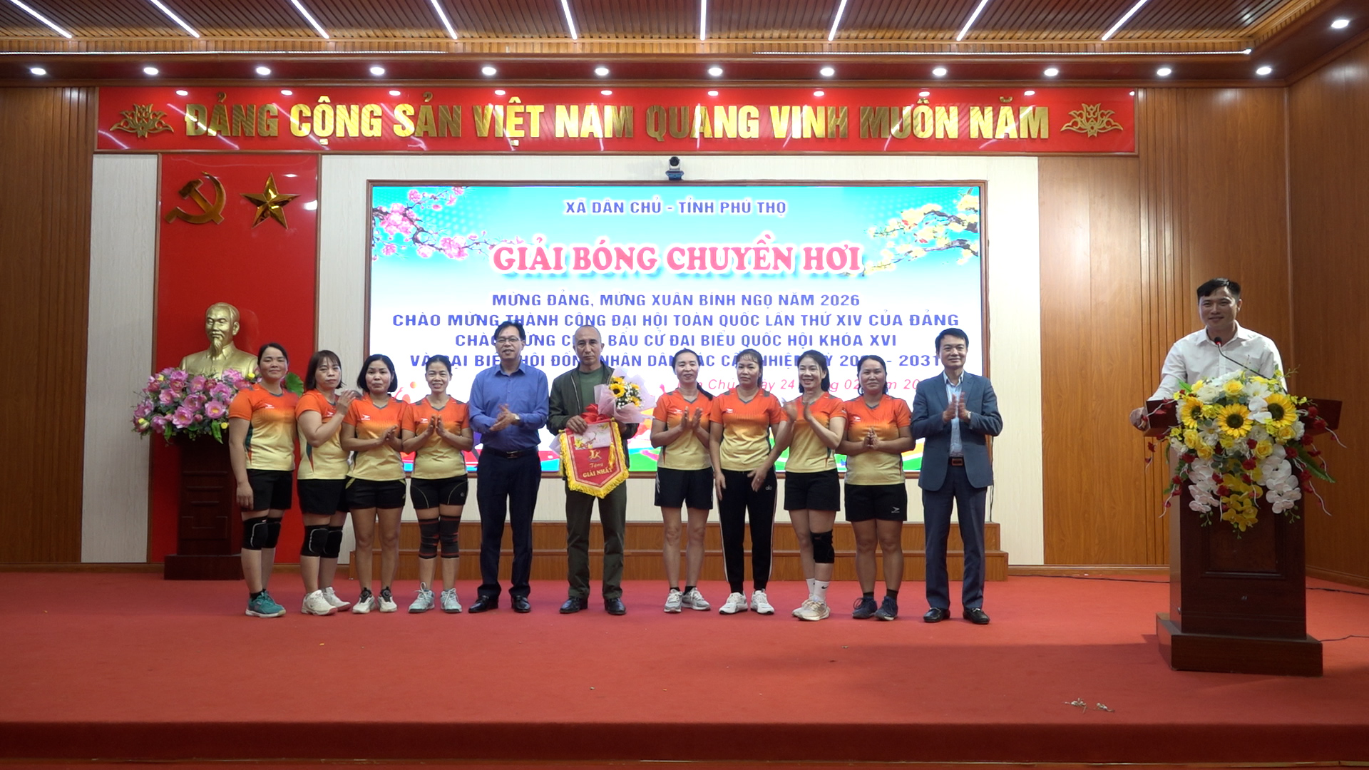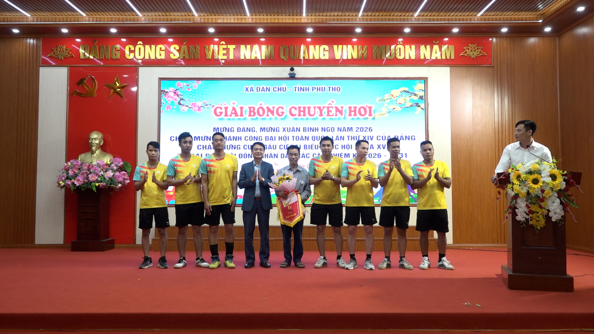 Ngày 24/02, UBND xã Dân Chủ tổ chức thành công giải bóng chuyền hơi mừng Đảng mừng Xuân Bính Ngọ 2026; thiết thực chào mừng thành công Đại hội đại biểu toàn quốc lần thứ XIV của Đảng, cuộc bầu cử đại biểu Quốc hội khoá XVI và đại biểu Hội đồng nhân dân các cấp nhiệm kỳ 2026 -2031.